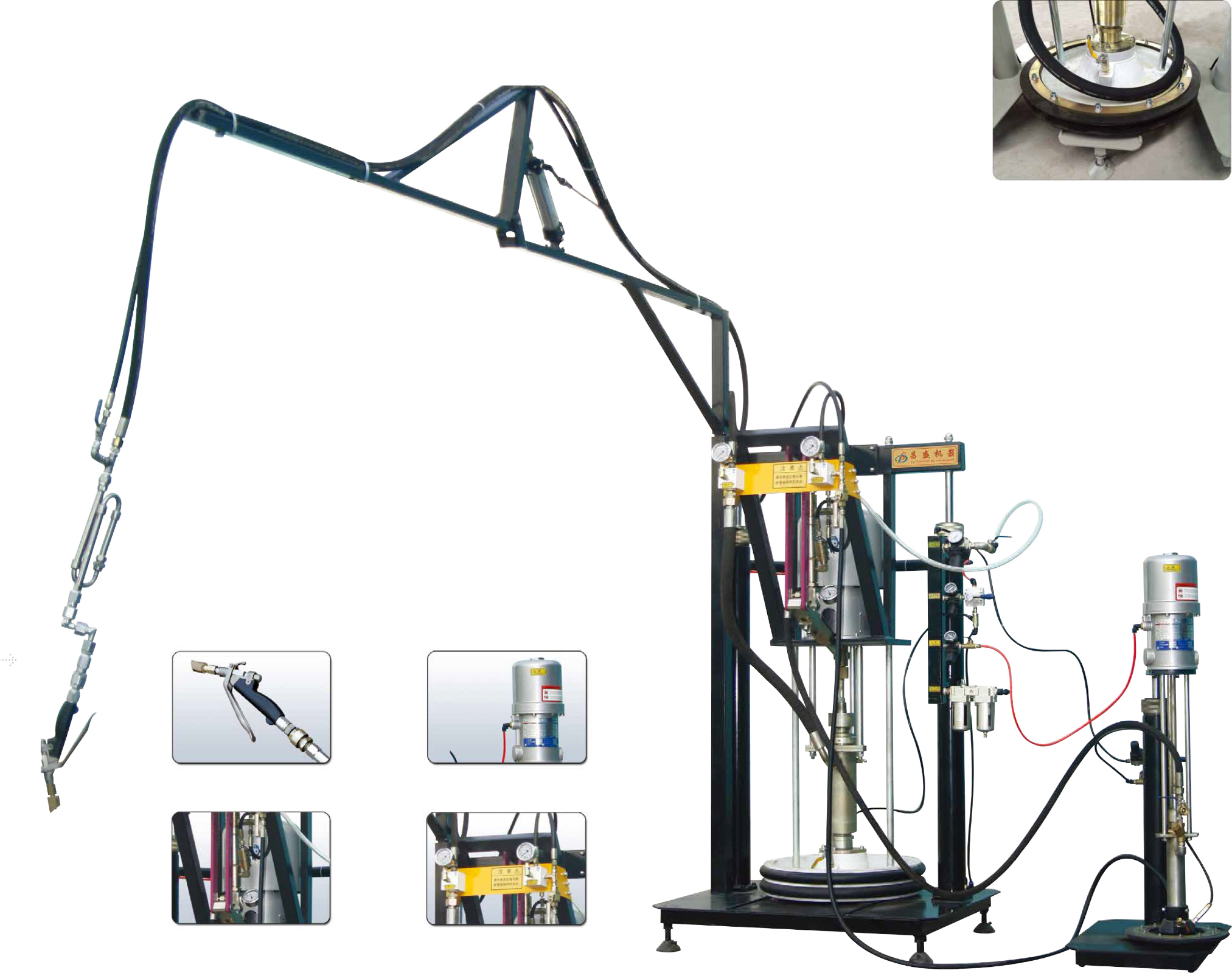 This machine is widely applicable to pdo lysuavina oneration occasions, is the ideal glass productionaccurate proportion. Uniform mixing and rapld spraying operaLionu oiistinon, uon and a alue cun systerm,equipment. The use of imported pneumatic motor and special glue injection gun, and a glue gun system,
